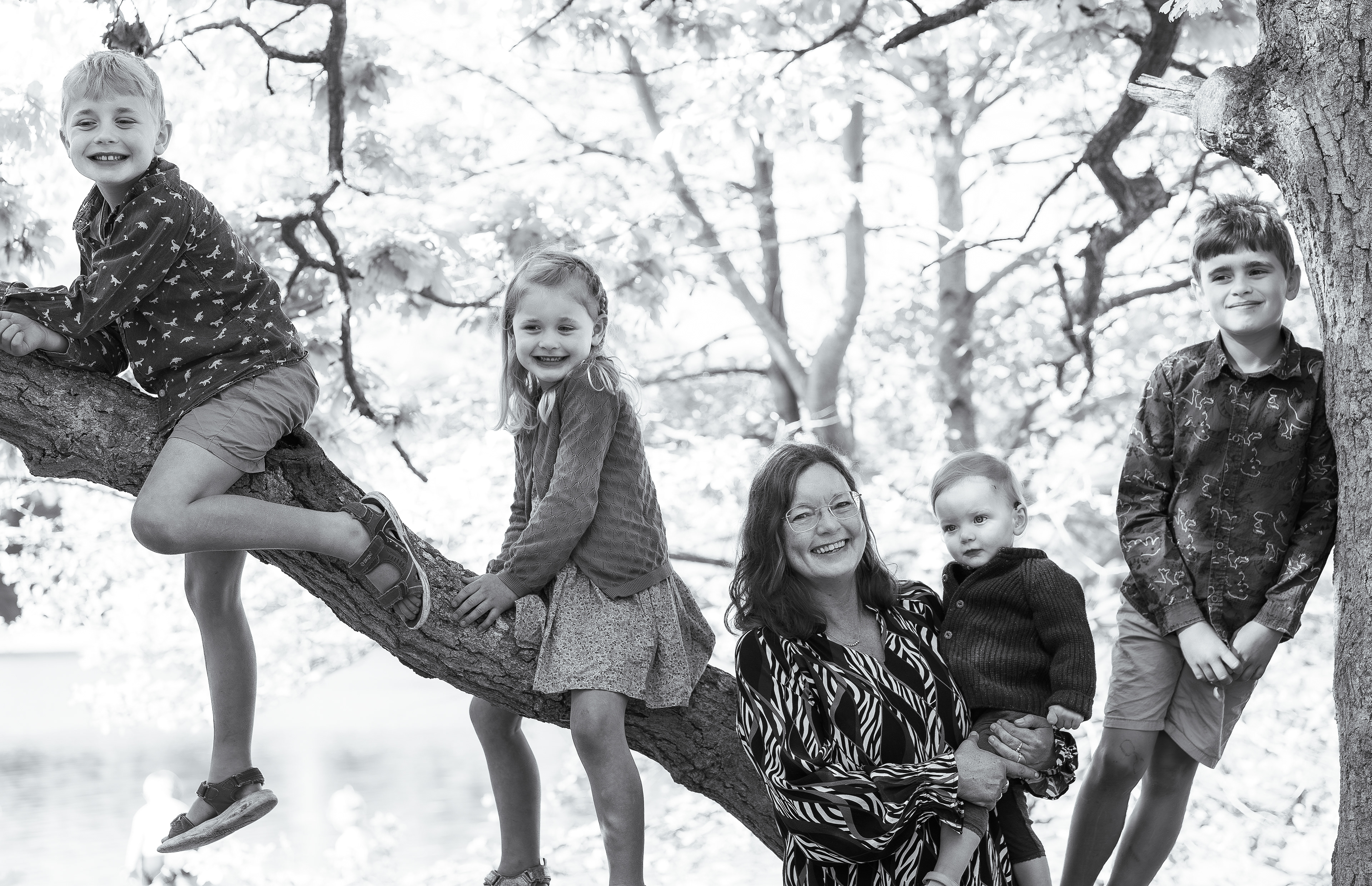 Vi går måske en tur. Sidder lidt i skovbunden. Kaster sten i vandet. Jeg fanger det, der sker imellem jer – de små bevægelser, den stille samhørighed.